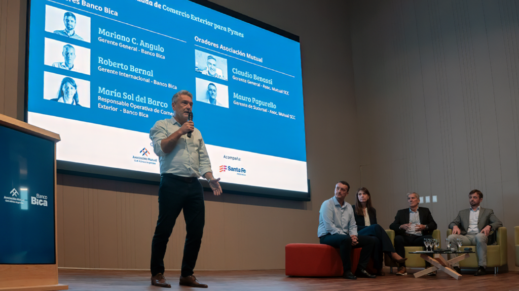 La actividad se llevó a cabo en San Carlos Centro, organizada por la Asociación Mutual del Club Atlético Argentino y Banco Bica, con el acompañamiento del Gobierno de la Provincia de Santa Fe. El encuentro, desarrollado en el auditorio de la mutual y con una importante participación, reunió a referentes del sector público y privado en un espacio de capacitación, análisis e intercambio sobre las oportunidades que hoy ofrece el comercio internacional para las pequeñas y medianas empresas.